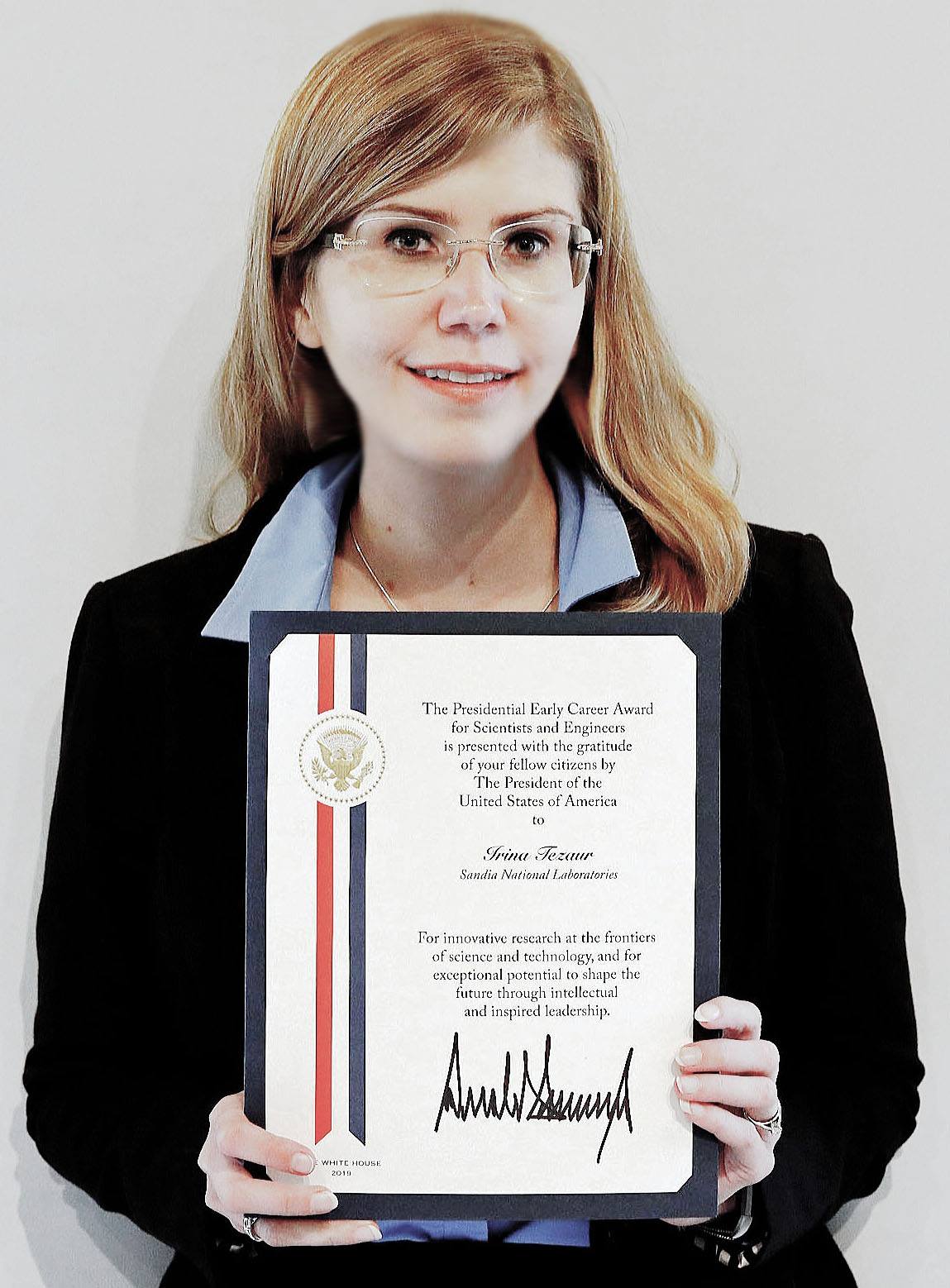 July 2019: President Donald J. Trump issued a press release announcing that I am one of the recipients of the Presidential Early Career Award for Scientists and Engineers (PECASE) for “developing new, impactful mathematical methods and computer algorithms to enable real-time analysis, control, and decision-making on computationally prohibitive problems relevant to nuclear security mission and climate modeling.” Additional press releases have been issued by the NNSA, Sandia Lab News, SNL’s Center 8000, the ABQ journal, the Livermore Independent News, and the Secretary of Energy Rick Perry. Below are a few photos from the White House and DOE ceremonies, both of which took place in Washington D.C. on July 25.