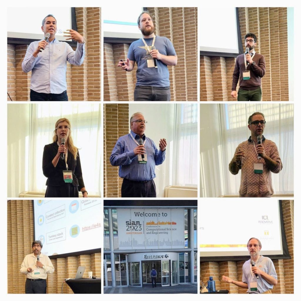 March 1, 2023: It was a privilege to give an invited talk in a featured minisymposium entitled “Bridging the Gap from HPC Software Engineering to Academic Research” held at SIAM CS&E 2023 in Amsterdam. For a synopsis of the minisymposium and the slides that were presented, please check out the following webpage created by the organizers, Jeffrey Young, Alessandro Orso and Keita Teranishi. Below is an image of the 8 speakers who presented in this minisymposium, including myself.