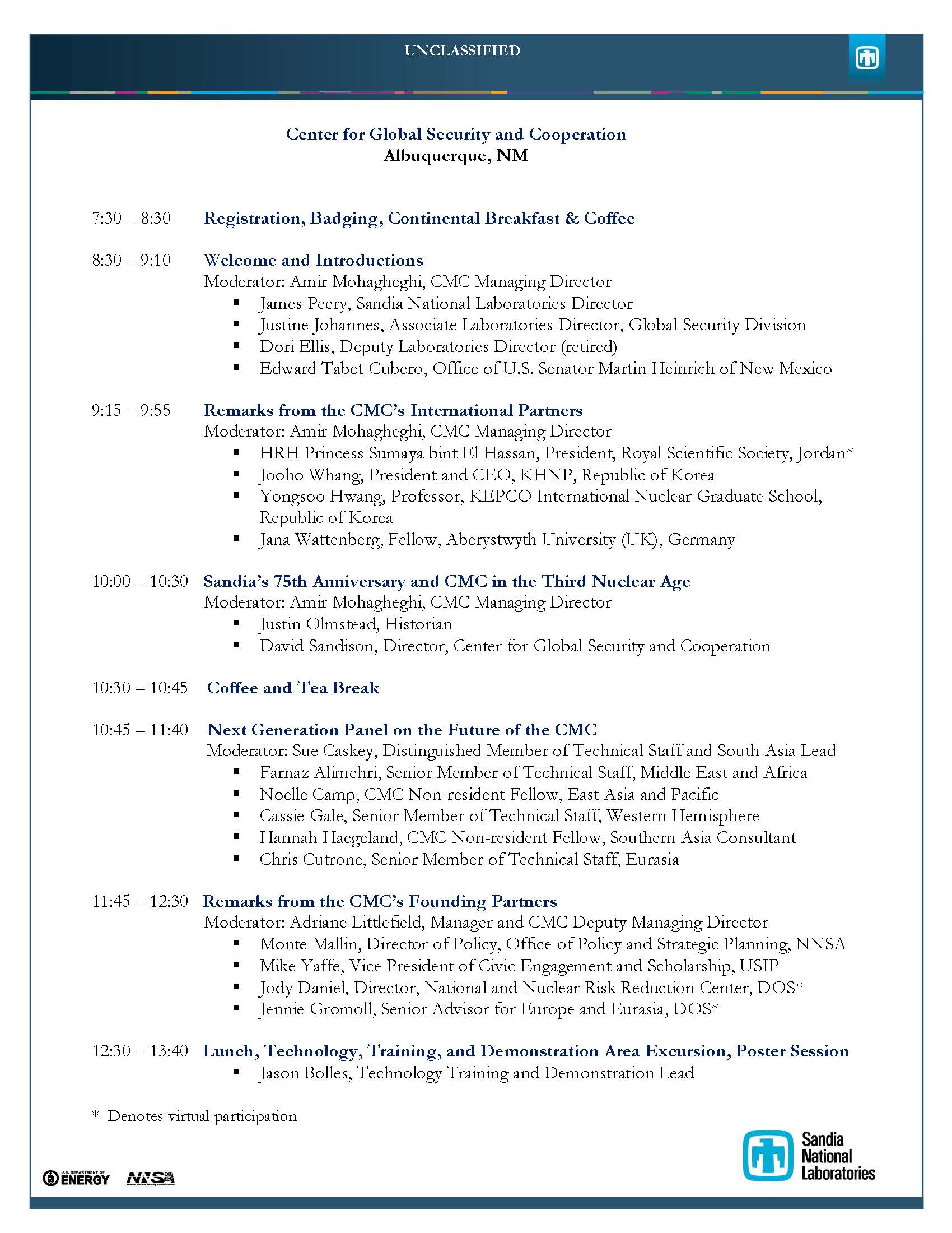 The Cooperative Monitoring Center (CMC) celebrated its 30th anniversary on September 12, 2024. Since its founding at Sandia in 1994, the CMC has fostered international scientific cooperation to build bridges between countries and inform policymaking in the interests of global security and peace. More than 30 speakers—including CMC present and former staffers, alumni, international and academic partners, and government sponsors—spoke on the CMC’s past and present accomplishments. More than 140 people attended the event—120 in person—including partners representing the Republic of Korea, Taiwan, Jordan, Germany, France, Brazil, Saudia Arabia, India, and Pakistan.