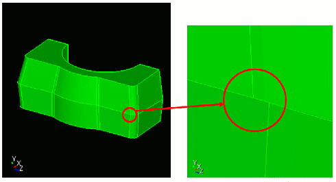 Figure 1 shows a typical example where the collapse curve command should be used to simplify the topology for meshing.