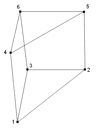 To create a wedge, 6 nodes are specified. The base is specified as a tri with the normal pointing inward using the right hand rule. To create the wedge shown in Figure 3, the following command would be entered:Create Wedge Node <range> [Owner Volume <id>]