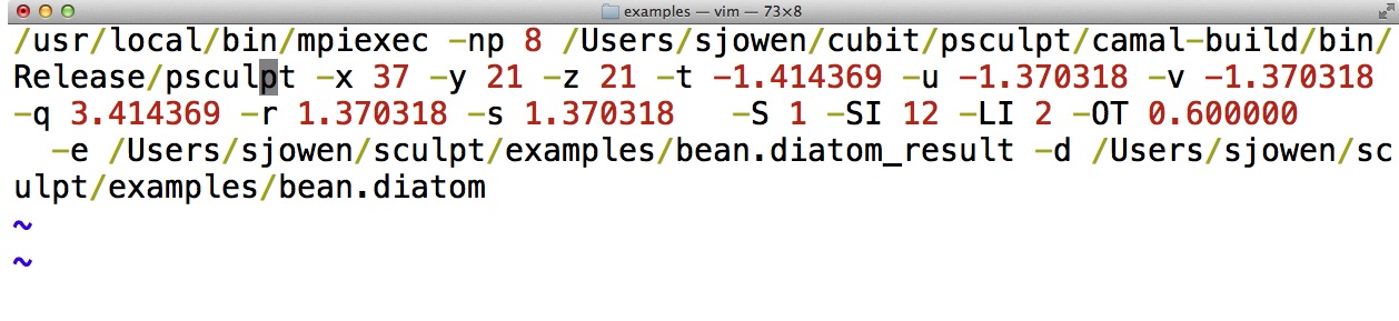 If Sculpt is to be run on a different machine, copy the files in the working directory to the other machine and issue the same command. Remember to change the path to the mpiexec and psculpt executables to match those on the new machine. For running on cluster machines that have scheduling of resources, check with your system administrator for how to submit a job for running.