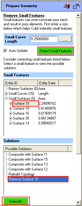 - You should now be on the Remove Small Features page. Click Detect small features. There should be 4 small surfaces on the list.