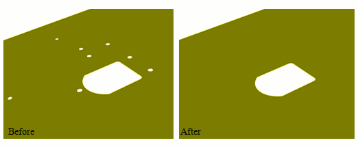 The exclude option allows the user to specify individual curves that should not be deleted, even if they meet the search criteria for removal. Figure 7 shows another hole removal example where several curves were excluded.