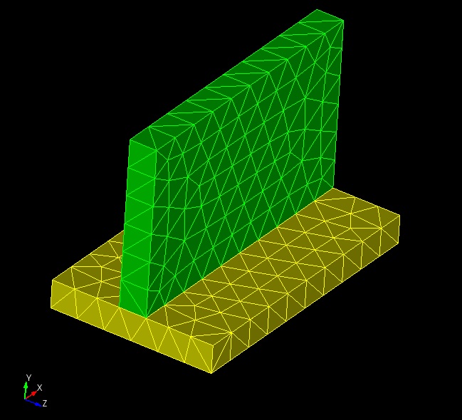 Local refinement of tets, triangles, and edges is available. When refining triangles a node is inserted at the enter of the triangle and three new triangles are connected to this node. The original triangle is deleted. The command to refine triangles is: