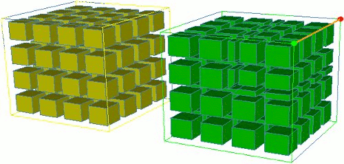 In cases where only a portion of the elements are selected for refinement, the elements at the boundary between the refined and non-refined elements will be split to accommodate a transition in element size. The transition pattern will vary depending on the local features and surrounding elements. For non-uniform refinement of hexahedron, for a numsplit of 1, each element in the uniform refinement zone will be subdivided into 27 (E=27) elements rather than 8. This affords greater flexibility in transitioning between the refined and unrefined elements.
