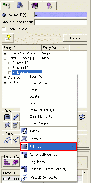 The Geometry-Surface-Modify-Split Menu will appear on the Control Panel. Make sure the Surface id is input in the window.