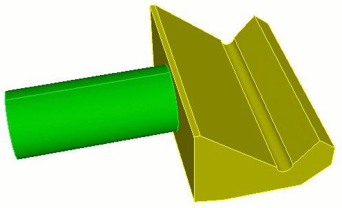 Figure 1 shows the model that will be meshed. The arrows in the figure show the two intersecting sweep directions. Figure 2 shows the model decomposed for grafting.