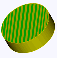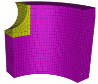 2. Sweep Surface About Axis: Sweeps a surface about a specified vector or axis through a specified angle. The axis of revolution is specified using either a starting point and a vector, or by a coordinate axis. This axis must lie in the plane of the surfaces being swept. The steps parameter defaults to a value of 0 which creates a circular sweep path. If a positive, non-zero value (say, n) is specified, then the sweep path consists of a series of n linear segments, each subtending an angle of [( sweep_angle ) / ( steps-1 )] at the axis of revolution. The include_mesh option will create a volumetric mesh if the surface is already meshed as shown below. The keep option will keep the original surface while creating the volume.