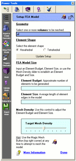 Setup FEA Model Panel