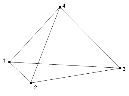 To create a tet, 4 nodes are specified. The base is specified as a tri with the normal point toward the fourth node using the right hand rule. To create the tet shown in Figure 2, the following command would be entered: