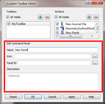 A Command Panel Button enables users to launch a command panel with the push of a button. A command panel button can be defined one of three ways: