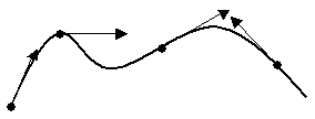 The curve option simply finds a tangent vector on a curve. Note that the on, tangent and at keywords are optional, as well as the location on the curve. If no location is specified, the tangent at the start vertex of the curve is found. See the section above, Specifying a Location on a Curve, for details on how to specify where along the curve the tangent vector is found.
