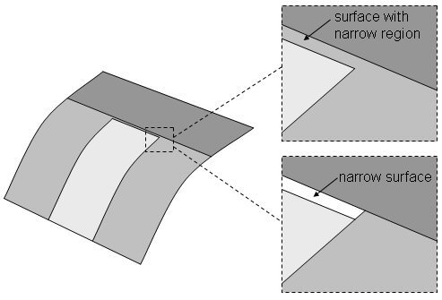 Figure 2. Two cases illustrating the difference between surfaces with narrow regions and narrow surfaces