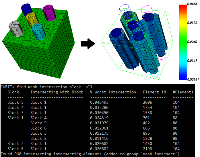 Figure 6. "Find mesh intersection block 1 with block all"