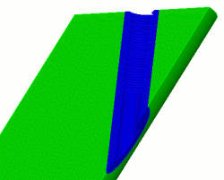 CUBIT> create vertex on curve 540 distance 2 from vertex 368 CUBIT> webcut body 4 with plane vertex 409 vertex 410 vertex 630 |
