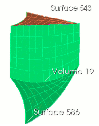 CUBIT> volume 19 scheme sweep source 543 target 586 CUBIT> mesh volume 19 |