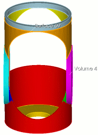 CUBIT> volume 2 scheme sweep source 13 target 69 CUBIT> volume 2 sweep smooth auto CUBIT> unmerge volume all |