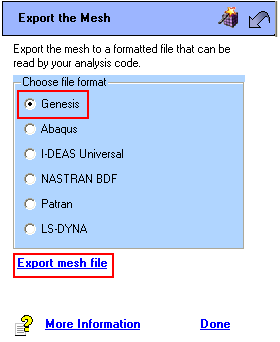 Cubit primarily supports the Exodus format for mesh export. But there are also limited export abilities for other formats as well. For a list of export capabilities see Exporting the Finite Element Model