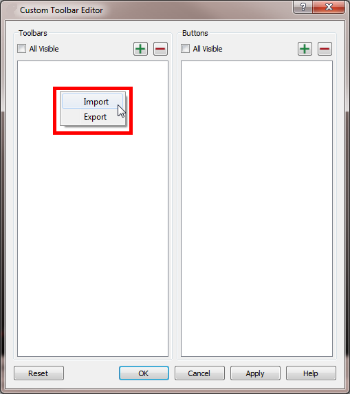 From this dialog a user may import an entire package containing multiple toolbars or a single toolbar. In this example we will import an entire package containing multiple toolbars.