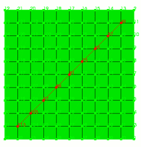 The Rebar command allows the user to specify a starting location for a set of edges and an initial direction. The program will find the closest existing node in the mesh to Start <x> <y> <z> and begin propagating through the mesh in the specified Direction <x> <y> <z>, adding edges to the block as it propagates through the mesh. The edge that is attached to the last node and is within a fixed 30 degrees of the specified direction is added to the block. The Propagation of the edges continues until either the optional Length value is reached or an edge does not meet the Direction criteria. Also required with this command is a block ID. An Element Type can also be specified.