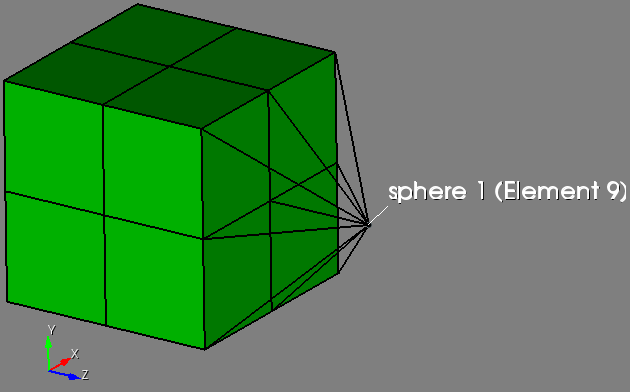 Figure 2. A sphere element created and connected to a solid mesh with 2d elements.
