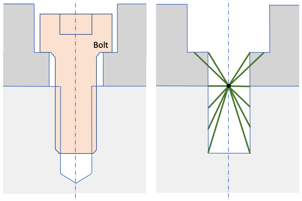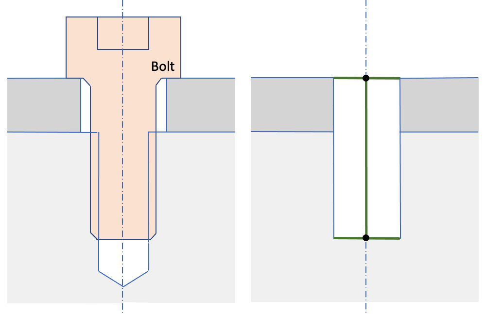The spider options will also simplify the surrounding geometry at the hole, including removing any blends or chamfers. It will also simplify the hole so in the lower volume to which the bolt is fastened will fit exactly to the bolt geometry or specified diamater.