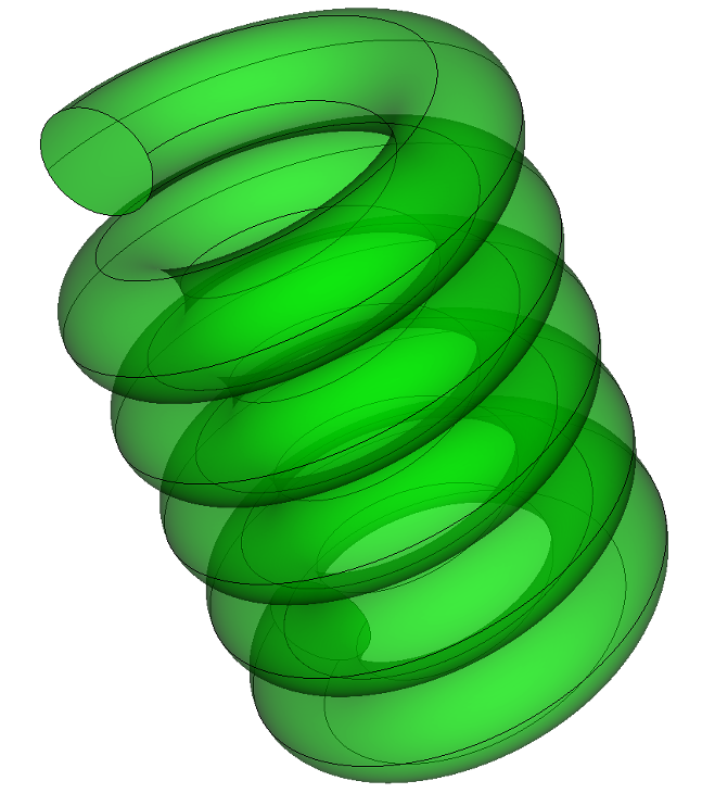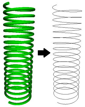 The Reduce Spring command is intended to prepare a volume identified as a spring for analysis by creating one or more free curves that follow the spring's path at the middle of its cross-section. The new curve(s) can be meshed with beam elements and used in place of 3D elements to represent the spring.