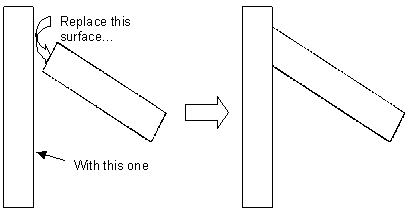 The Tweak target form of the command actually replaces the given surfaces with a copy of the new surfaces, then extends and trims surfaces to match up. This can be useful for closing gaps between components or performing more complicated modifications to models. The command syntax is: