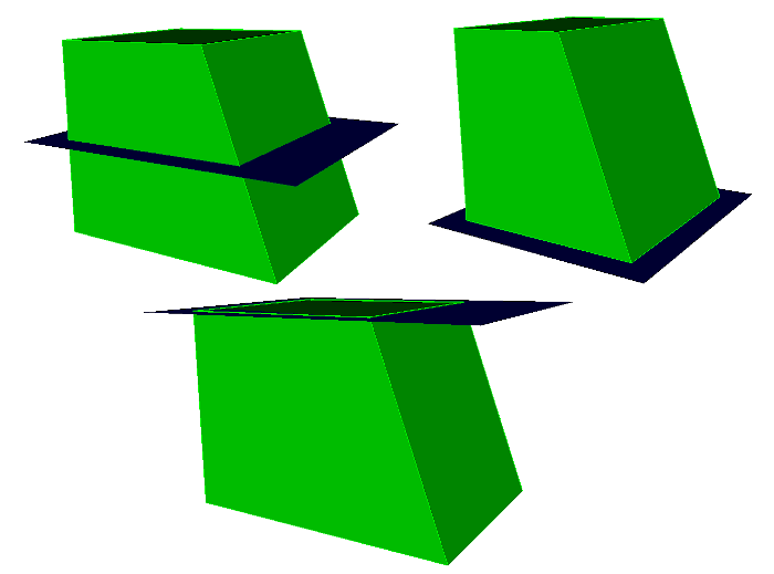 Figure 11. A cube with one surface tapered 20 degrees with a plane in the middle, bottom, and top.