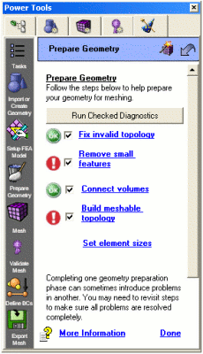 Many meshing tasks require an iterative approach to the mesh generation process. For your convenience, if you do click on one of the task buttons from a different panel, it will take you to the last visited panel in that section. For example, if you are on the mesh generation page, and you click on the prepare geometry section, it will take you to the last page you visited in the prepare geometry section.
