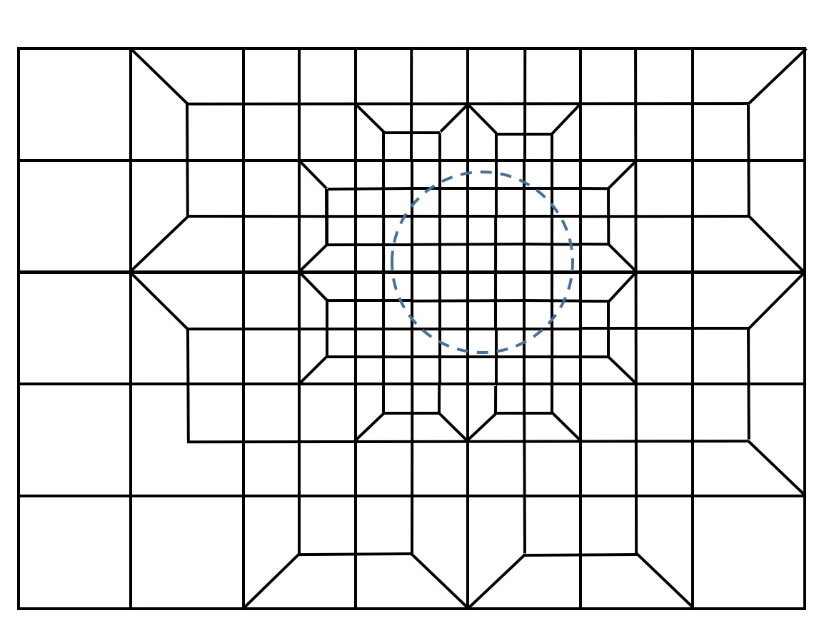 In all cases the initial Cartesian grid defined by xint, yint and zint or the cell_size value will be used as the basis for refinement and will define the approximate largest element size in the mesh.