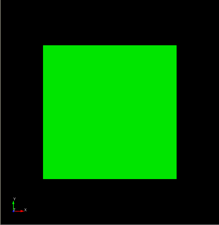 Now you may begin generating the geometry to be meshed. You will create a brick of width 10, depth 10 and height 10. The width and depth correspond to the x and y dimensions of the object being created. The "width" or x-dimension is screen-horizontal and the "depth" or y-dimension is screen-vertical. The height or z-dimension is out of the screen.