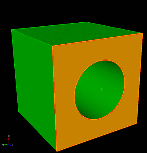 Place the cursor into the Surface ID(s) field. Select the front surface of the object by selecting anywhere within the region indicated. The id of Surface 11 will be echoed in the field.
