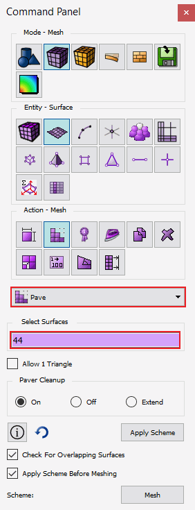 set the scheme to pave for Surface 44