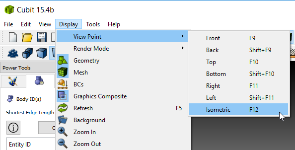 The following image shows the entity ids that will be used to webcut the volume. Select entities with the mouse by clicking on them.