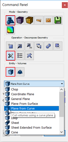 The web cutting menu is located under Geometry-Webcut-Volume on the Control Panel.