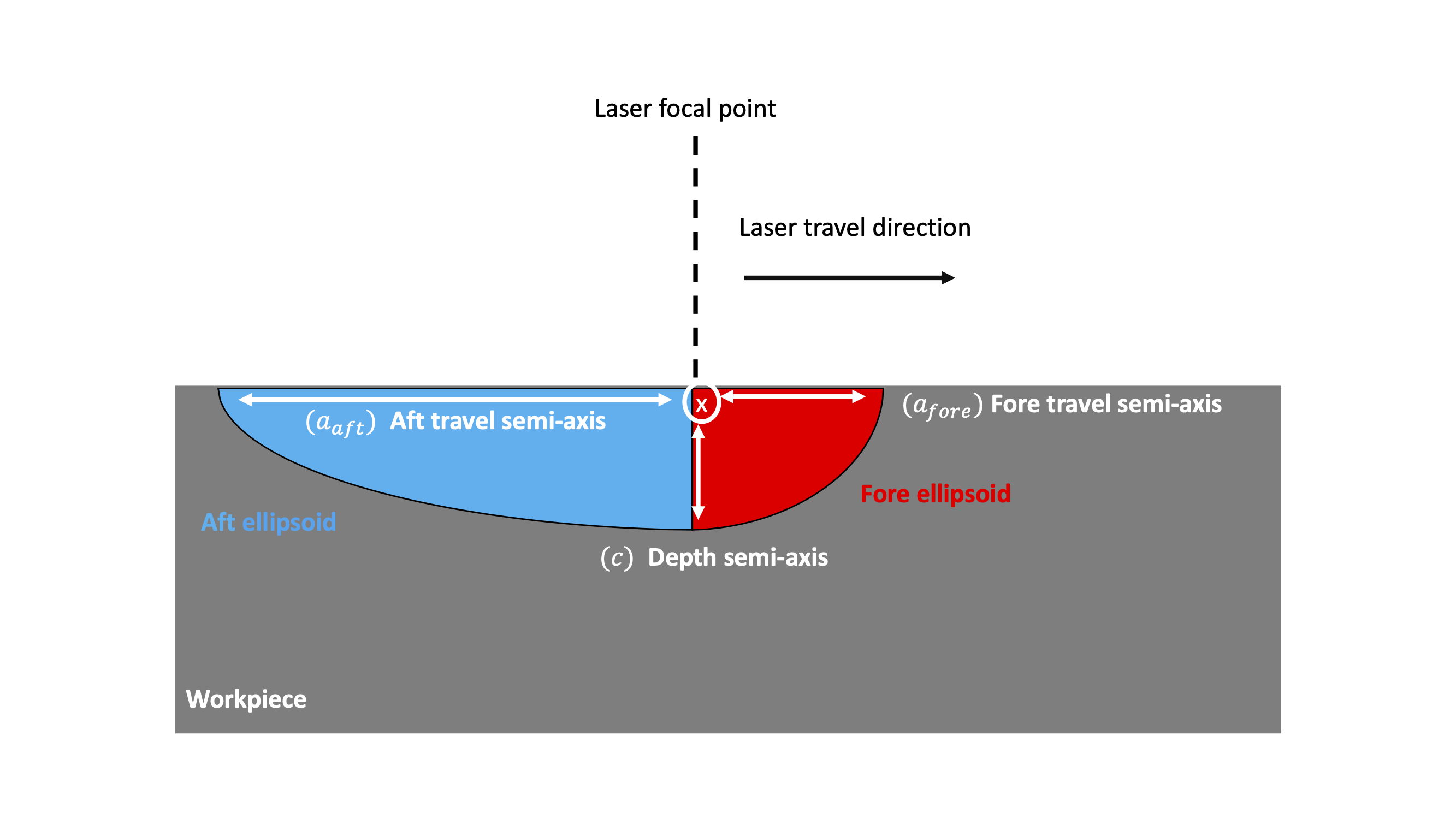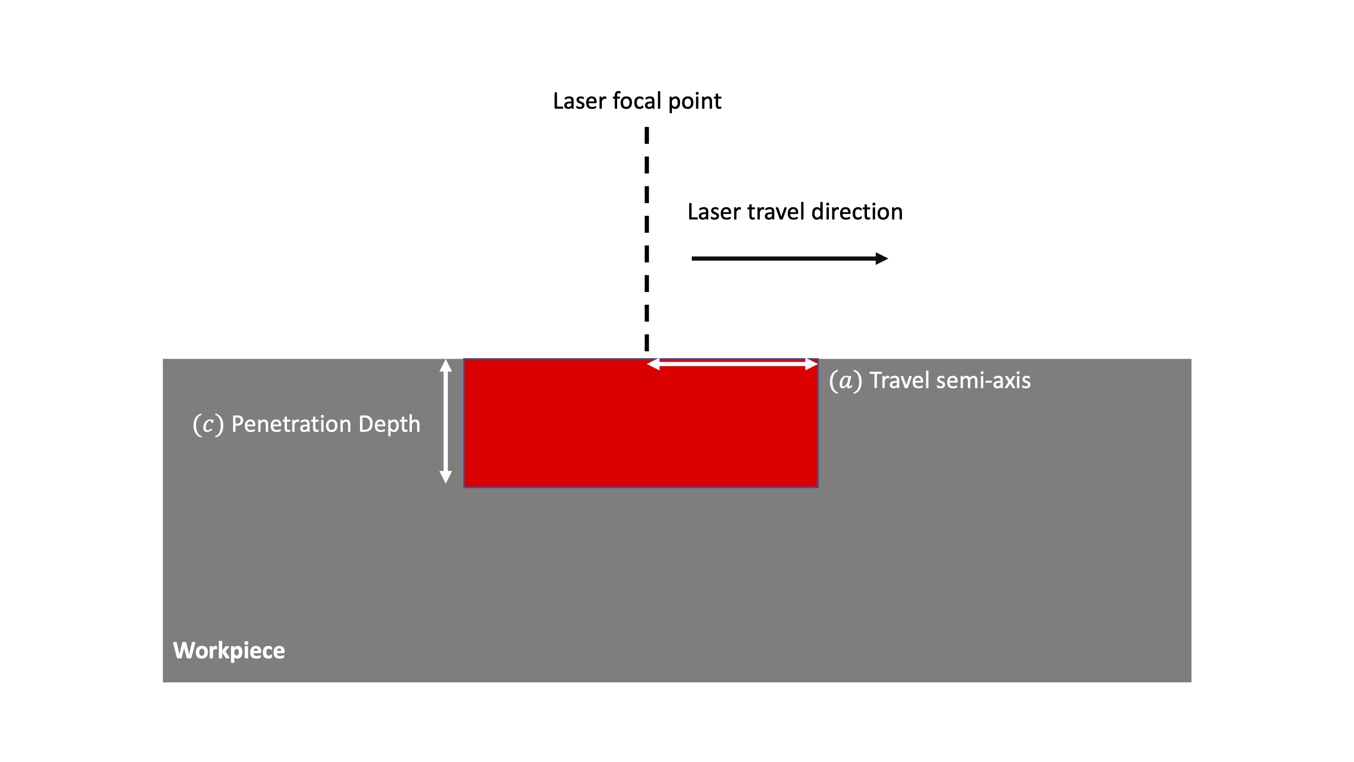is the aft power fraction. The figure below shows a schematic of the double ellipsoid energy source model, where the width semi-axis is pointing out of the page.