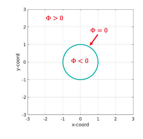 Fig. 3.2 Schematic of 2D circular interface using a signed distance function