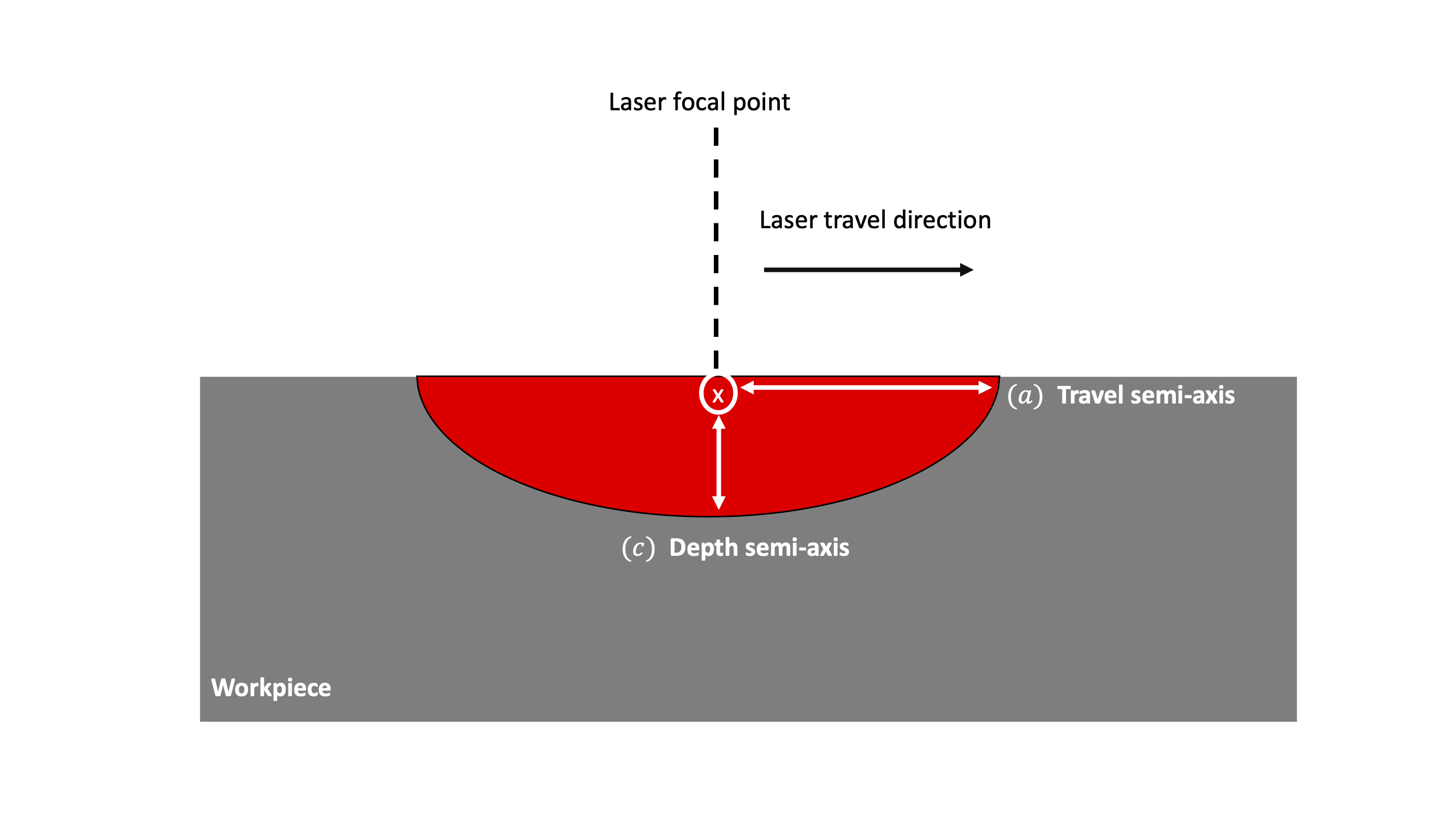 is the aft power fraction. The figure below shows a schematic of the double ellipsoid energy source model, where the width semi-axis is pointing out of the page.