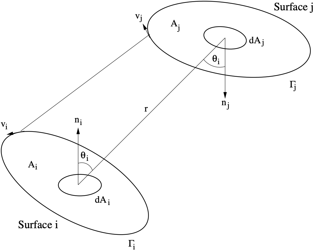 Fig. 3.6 Two arbitrary facets radiating energy to one another