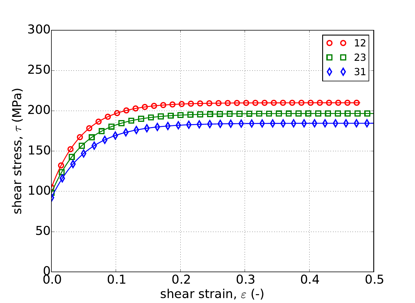 \[\bar{\sigma}=\sigma_y + A\left(1-\exp\left(-n\bar{\varepsilon}^p\right)\right),\]