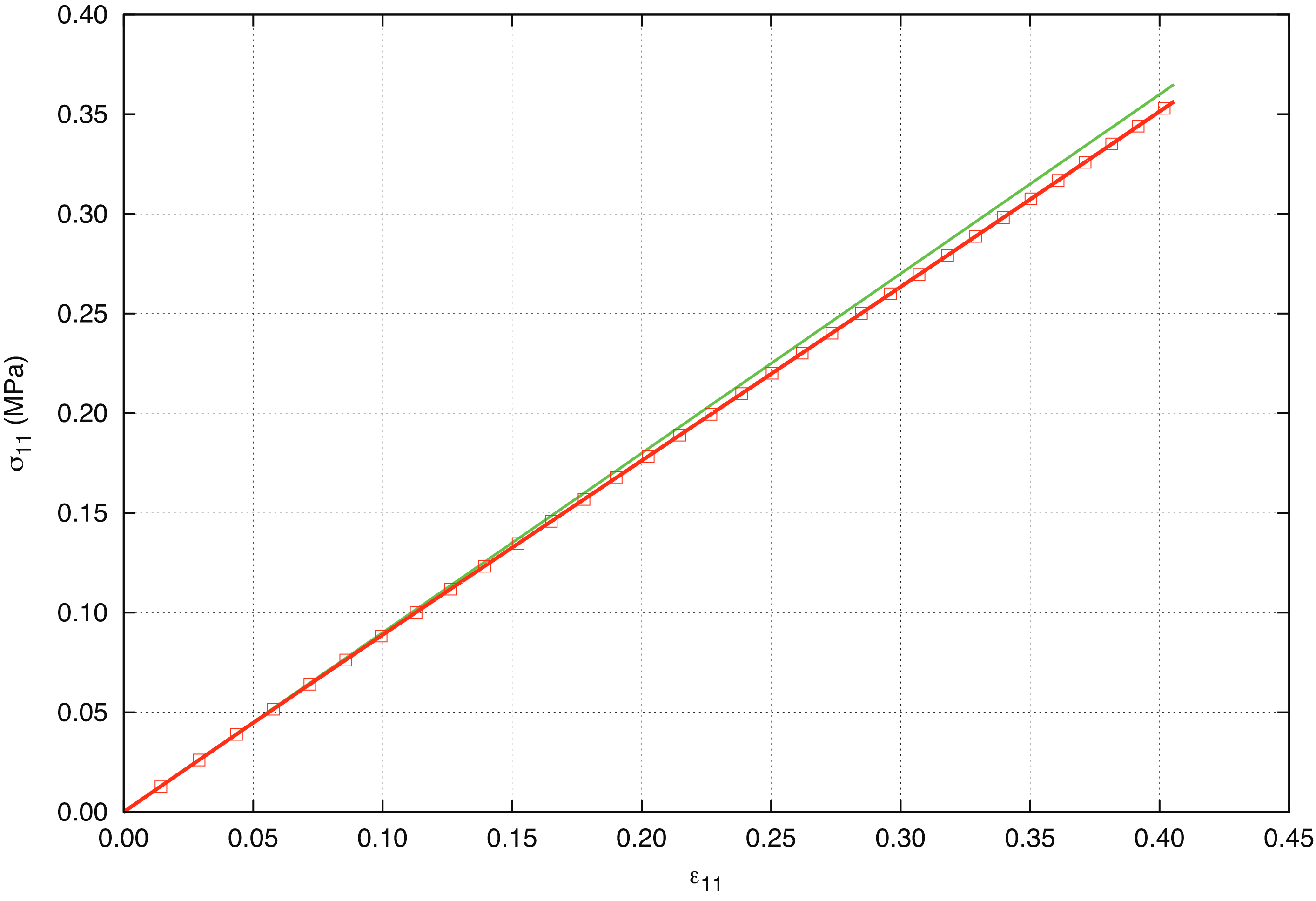 Fig. 4.11 Analytical and numerical results for the uniaxial stretch case.