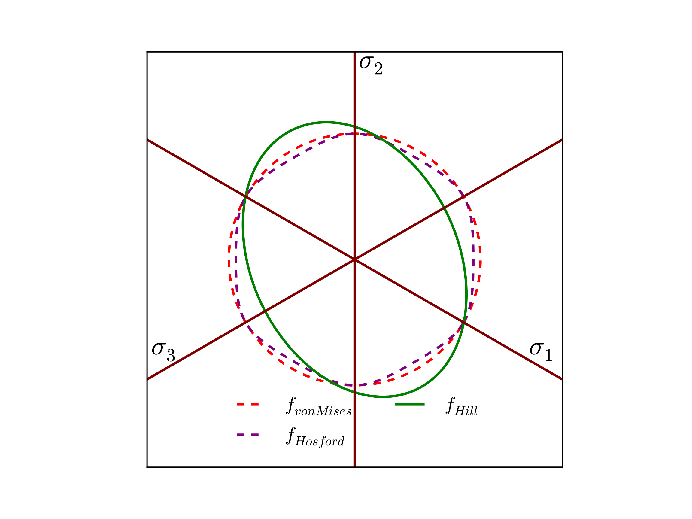 Like other plasticity models, the Hill yield surface, \(f\), is written,