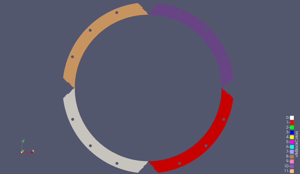 However, suppose you are interested in which quadrants have the max normal gap. Therefore, you divide the sidesets of the two cylinders into four separate quadrants like below: