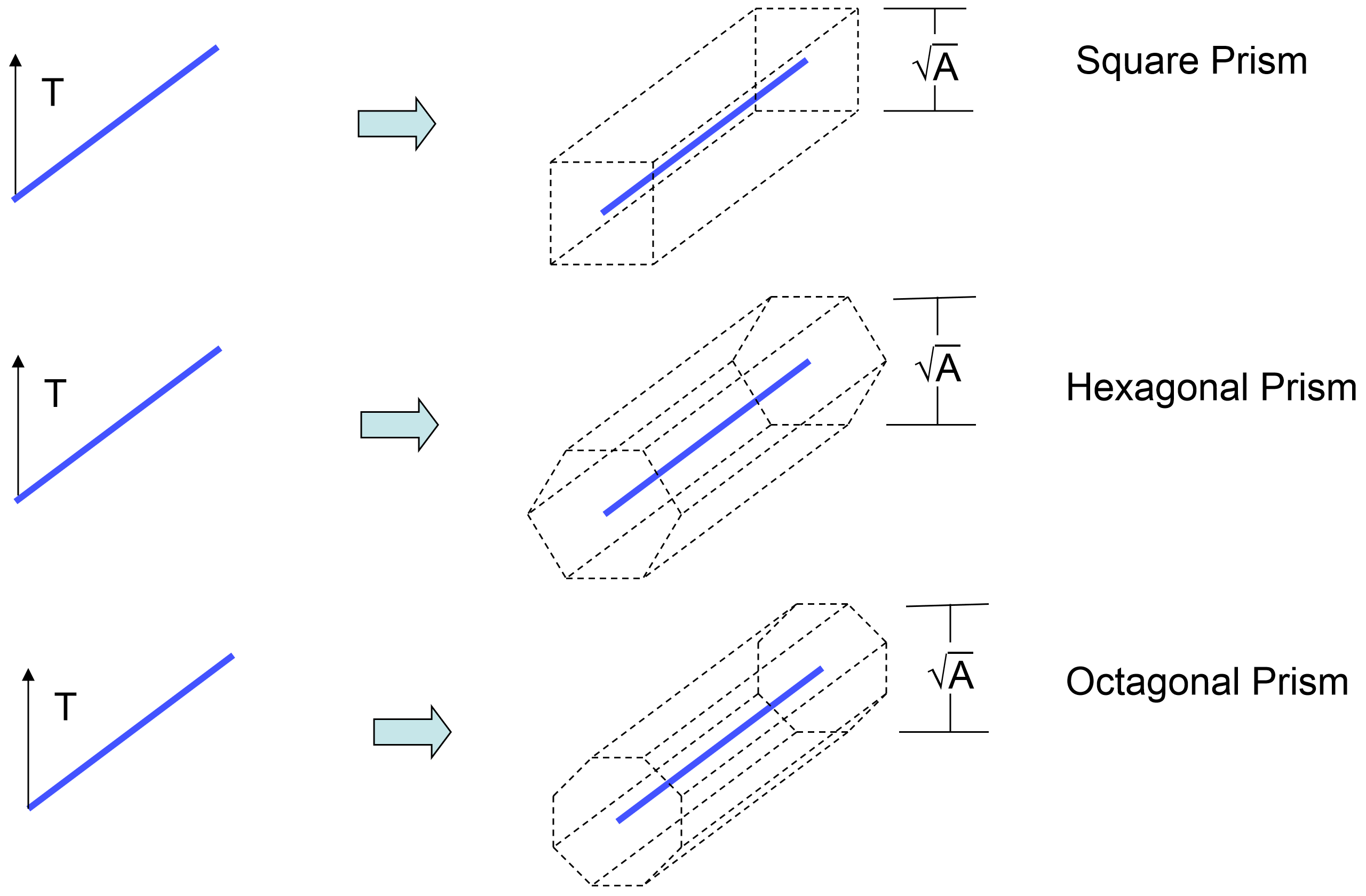 By default, contact represents the cross section of lofted beam elements by a six sided prism. The radius of the vertexes of the hexagons is the square root of the beam cross sectional area divided by pi. That is, the beam cross sectional area is converted into a circle, and then the hexagon end cap of the beam roughly represents this circle. Note that for a circular beam, the contact representation of that beam will nearly match the actual beam geometry. However, for an I-Beam cross section, the shape of the contact representation may be significantly smaller than the actual cross section length scales. The representation of various beams in contact is shown in Fig. 8.20.