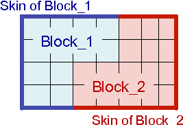 The SKIN ALL BLOCKS is useful for large models in which individual specifying each contact surfaces would be unwieldy. The behavior of skin all blocks is best described by example. If a finite element analysis contains five element blocks: