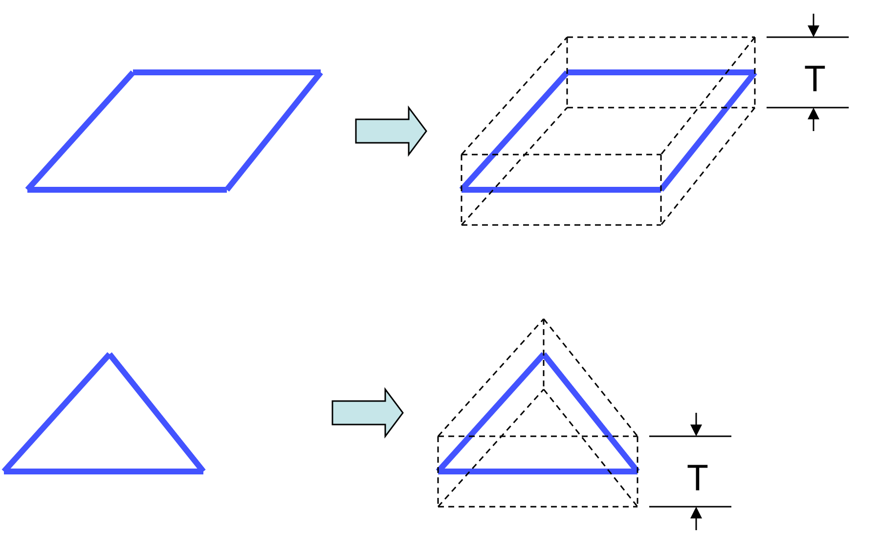 Lofted shells are represented by prisms around each shell element. An example representation of shells in contact is shown in Fig. 8.23. Lofted shells are used to represent shells, membranes, and other two dimensional elements. The lofted shell geometry is also based on the element section LOFTING FACTOR as shown in Fig. 6.4.