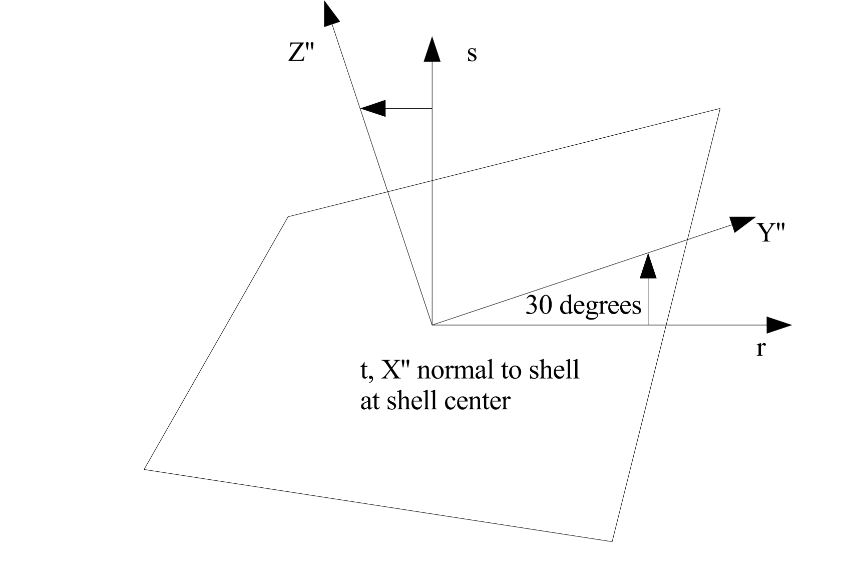 The element variables cylj_rst_origin, cylj_r_axis, cylj_s_axis, and cylj_t_axis can be used to visualize the local co-rotational Cartesian reference axes, which is constructed in much the same way as for beam or bar elements. The value of cylj_rst_origin is at the center of the two node element and the cylj_r_axis is in the direction from first node to the second node as defined by the two node element connectivity (note that the cylj_r_axis is not the radial direction). The directions cylj_s_axis and cylj_t_axis are internally computed and are orthogonal to each other and cylj_r_axis.