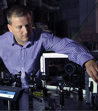 Sandia optical diagnostics researcher Christopher Kliewer has won a DOE Early Career Research award that will fund the development of new optical diagnostic tools to study interfacial combustion interactions, which are major sources of pollution and vehicle inefficiency. (Photo by Dino Vournas)